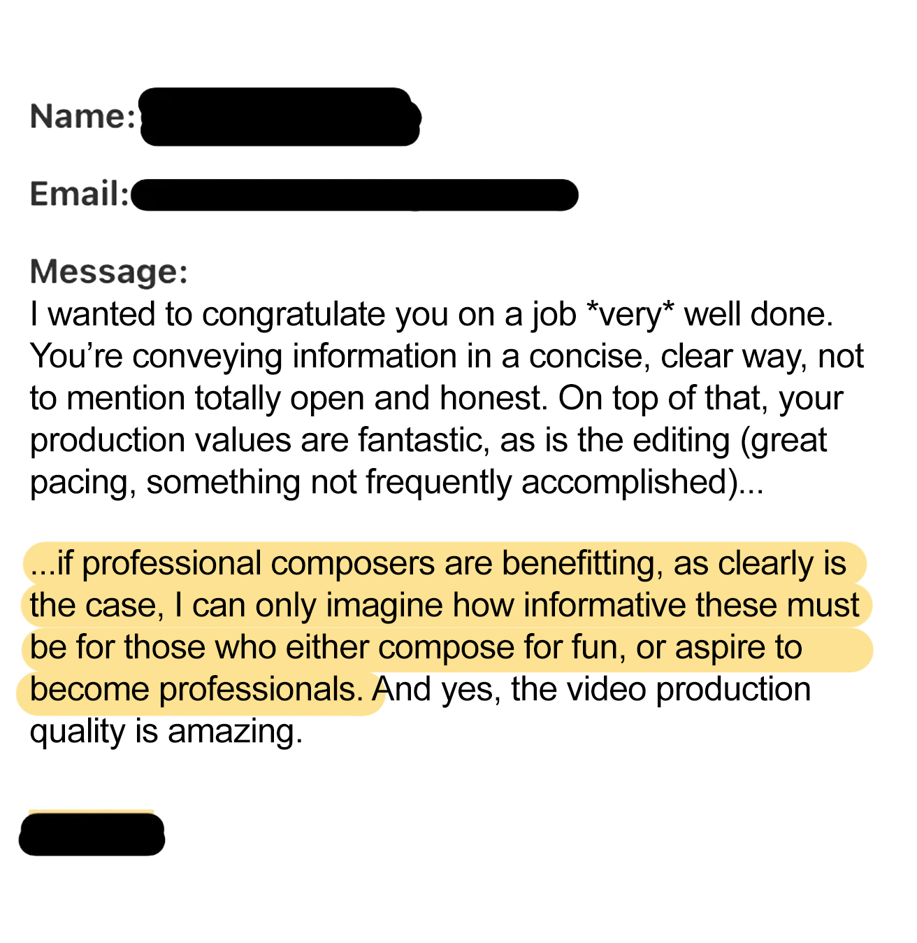 In 2023 I was hiring a new assistant for my studio and had over 100 applicants, many from top music and film scoring programs. However, only a small handful seemed capable of jumping into the studio and helping me juggle multiple projects. After learning from colleagues that it was very common to spend months training already great musicians, getting them up-to-speed for working on major studio projects, I decided to create Modern Media Composer. This is a resource where composers, musicians and producers can get real world knowledge about music writing & production, in addition to the lessons I've learned about the business of composing for film, tv and video games.